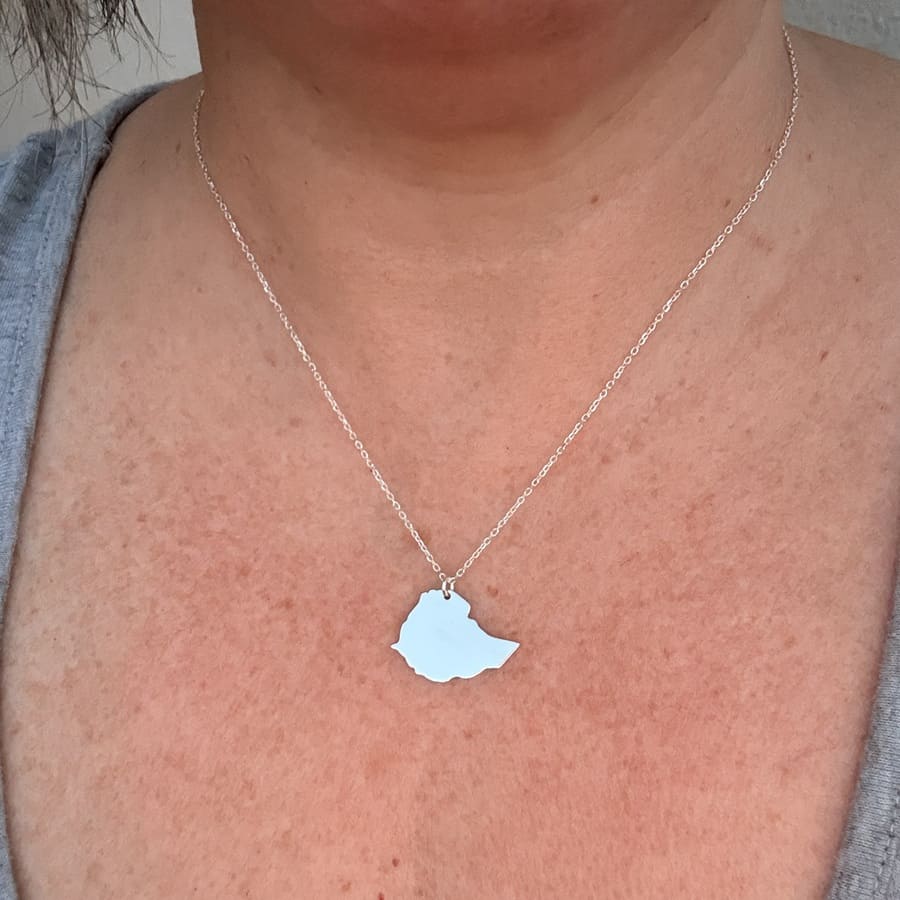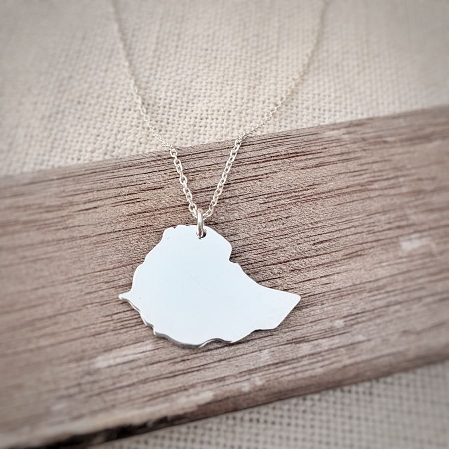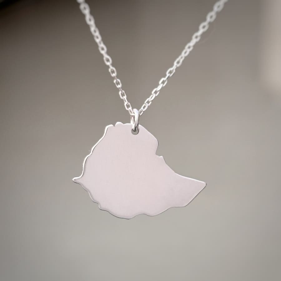 Un delicat collaret Etiòpia de plata de llei amb forma de mapa etíop, símbol de viatge, arrels i llibertat.
