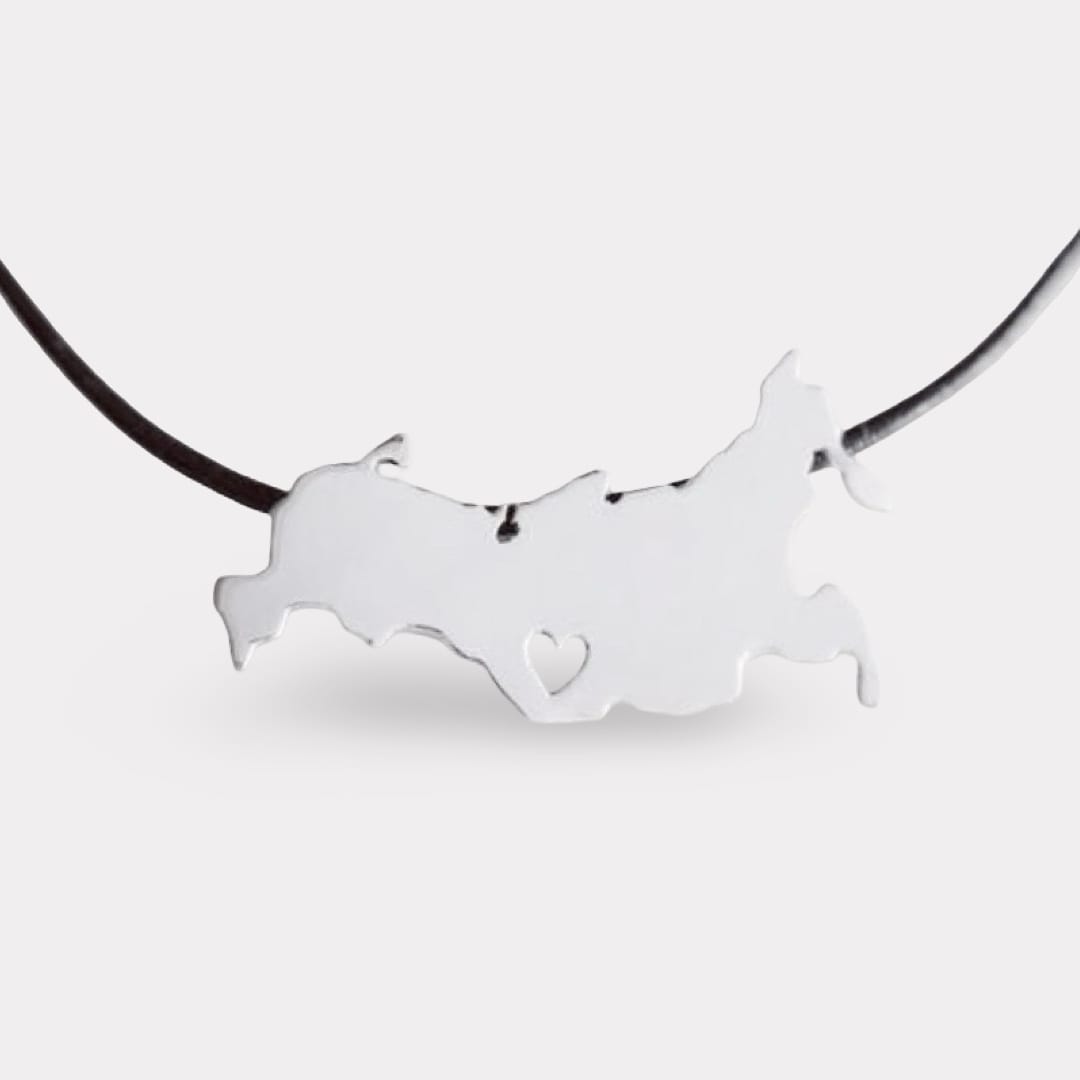 This striking necklace features a pendant in the full silhouette of Russia, meticulously hand-sawed and finished in solid 925 sterling silver. With a clean matte finish and organic contours, the piece balances minimalist design with symbolic weight.
